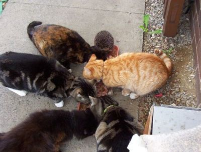 猫にまじってご飯を食べるタワシ可愛い(*´▽`*)